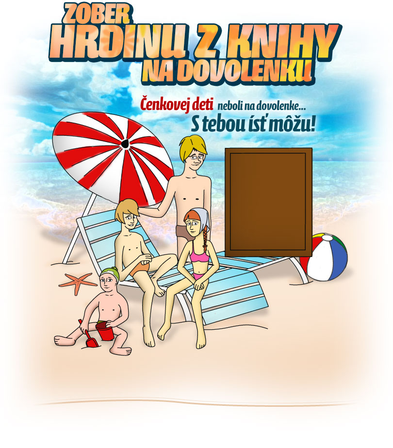 V aplikaci jsou zobrazena dvě lehátka na pláži na jednom z lehátek leží hrdina z porpagované knihy a na druhém lehátko má užiovatel možnost nahrát fotografii ze svého facebookového profilu.