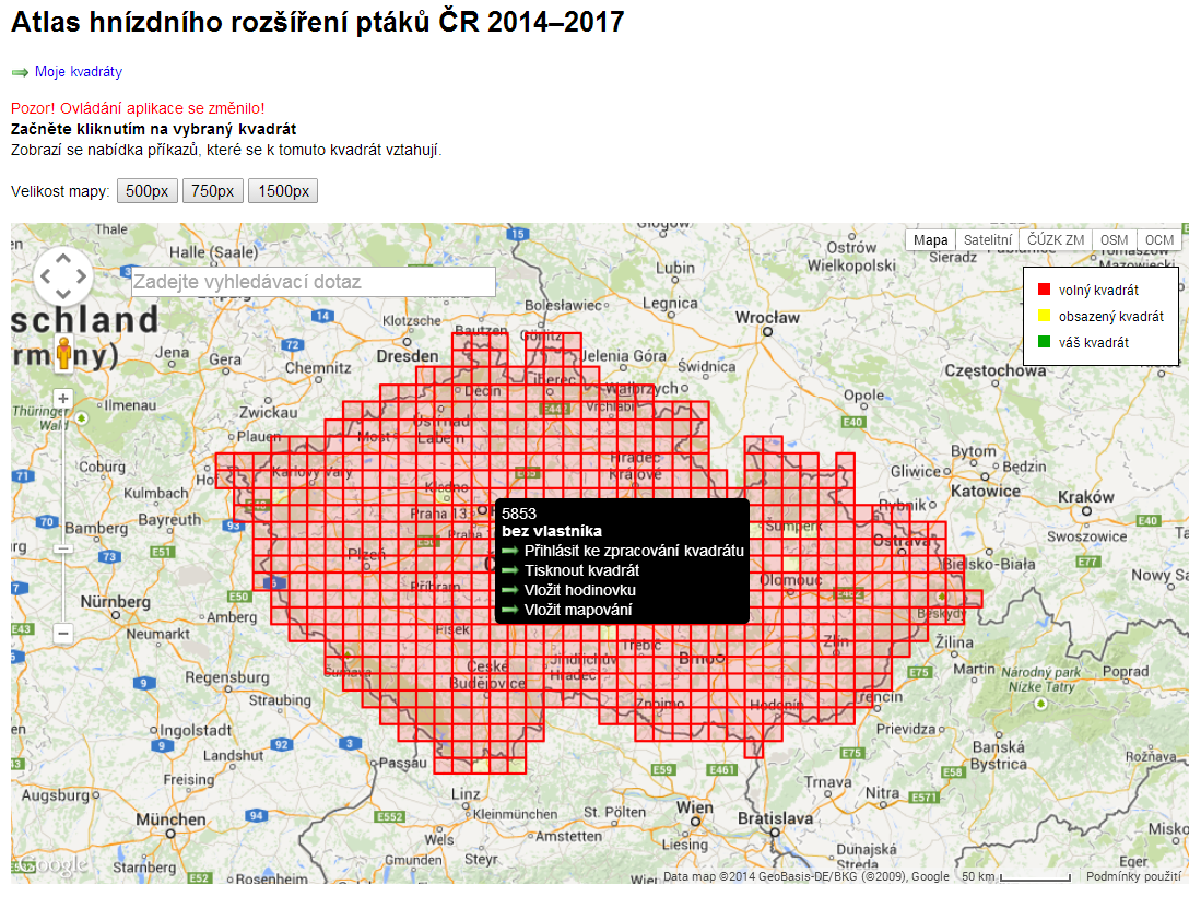 Vytvořili jsme aplikaci pro sledování hnízdění ptactva na našem území. Ornitlogové a dobrovolnící z celé ČR prostřednoctvím této aplikace mohou sledovat zabrané kvadráty, ve kterých provádějí sledování. Výsledky pak vkládají do oficiálních formulářů, která zajišťují ukládání a analýzu získaných dat pro Českou společnost ornitologickou.